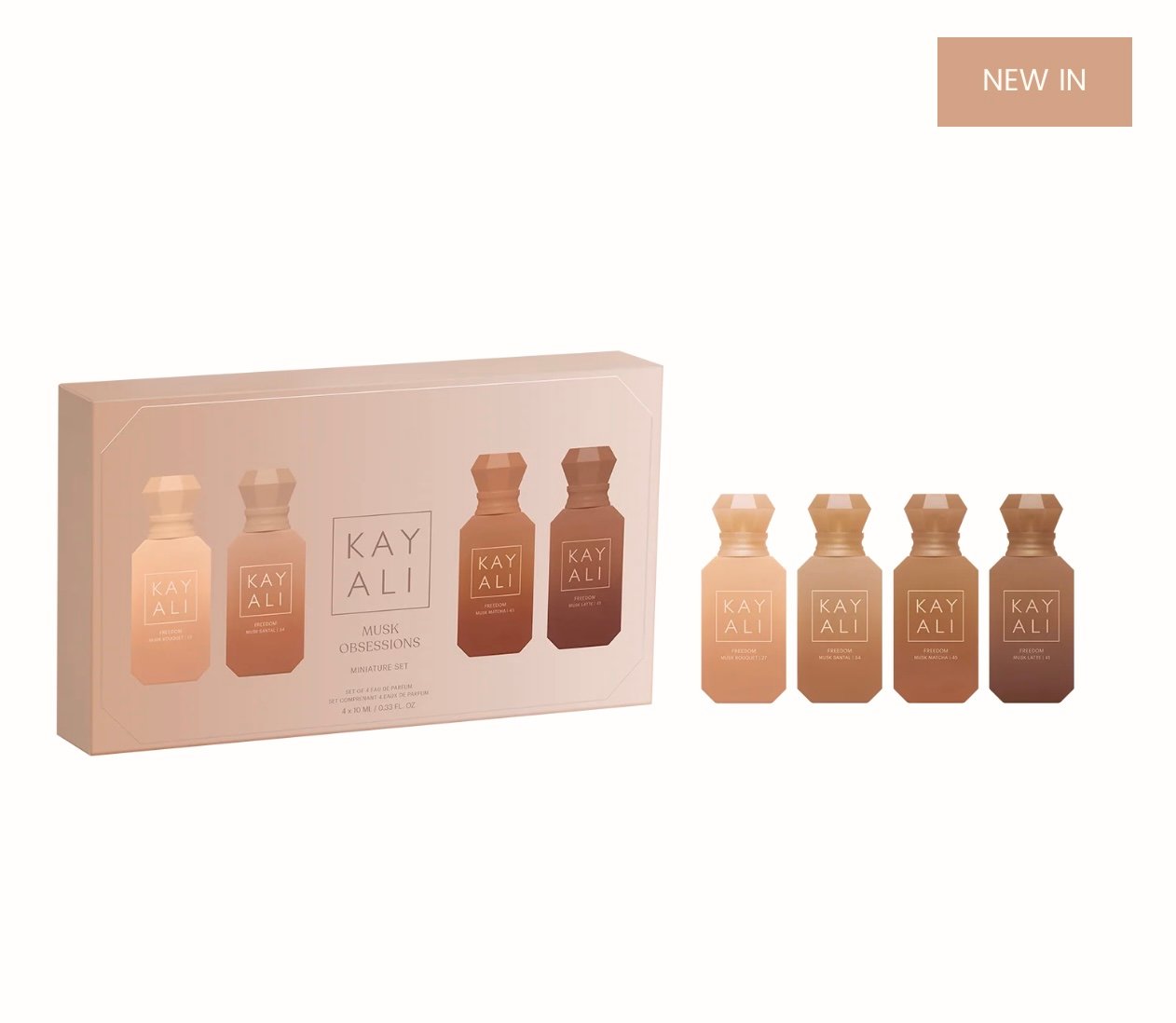احتفلي بجمال التعبير عن الذات مع مجموعة Musk Obsessions المصغرة ذات الإصدار المحدود من خيالي (KAYALI). تُعد هذه المجموعة خياراً مثالياً للإهداء أو للاقتناء الشخصي، وتضم أربعة ابتكارات فريدة من مجموعة "Freedom Collection" وهي: Freedom Musk Bouquet | 27، وFreedom Musk Santal | 34، وFreedom Musk Matcha | 45، وFreedom Musk Latte | 41 – جميعها متوفرة بأحجام مصغرة فاخرة (Deluxe) سعة 10 مل.