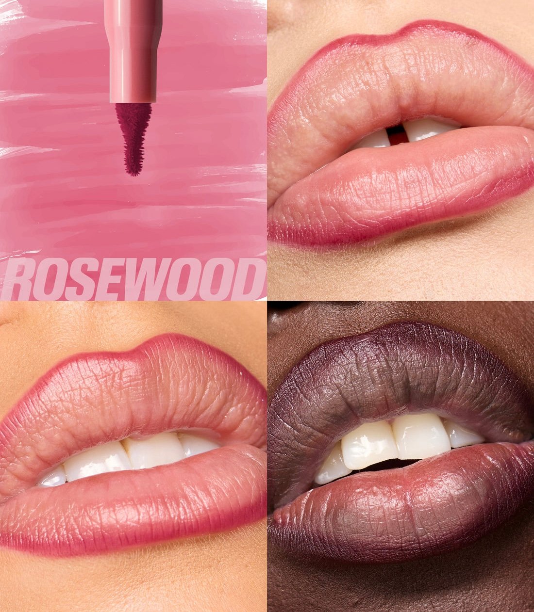 سهل الاستخدام ويدوم طويلًا بين مُلوّن شفتين (Lip Stain) و قلم تحديد شفتين (Lip Liner)، وهو مُقاوم للتلطخ، ومُقاوم للتقبيل، ومُقاوم للانتقال لمدة 12 ساعة.
