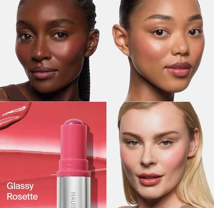 • بلسم أحمر الخدود "Glassy Blush Balm" من هاوس لابس (Haus Labs by Lady Gaga): بلون Glassy Rosette - حجم كامل (5 جرام).