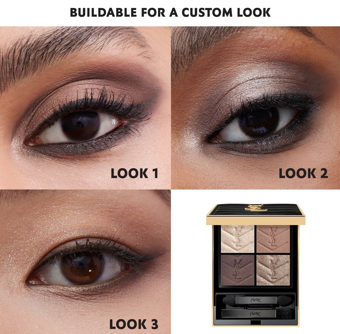 ما هو: مجموعة ظلال عيون فاخرة تتكون من أربعة ظلال عيون ذات صبغة عالية وتتميز بتركيبة ناعمة غنية بالزيت لتدوم طوال اليوم.