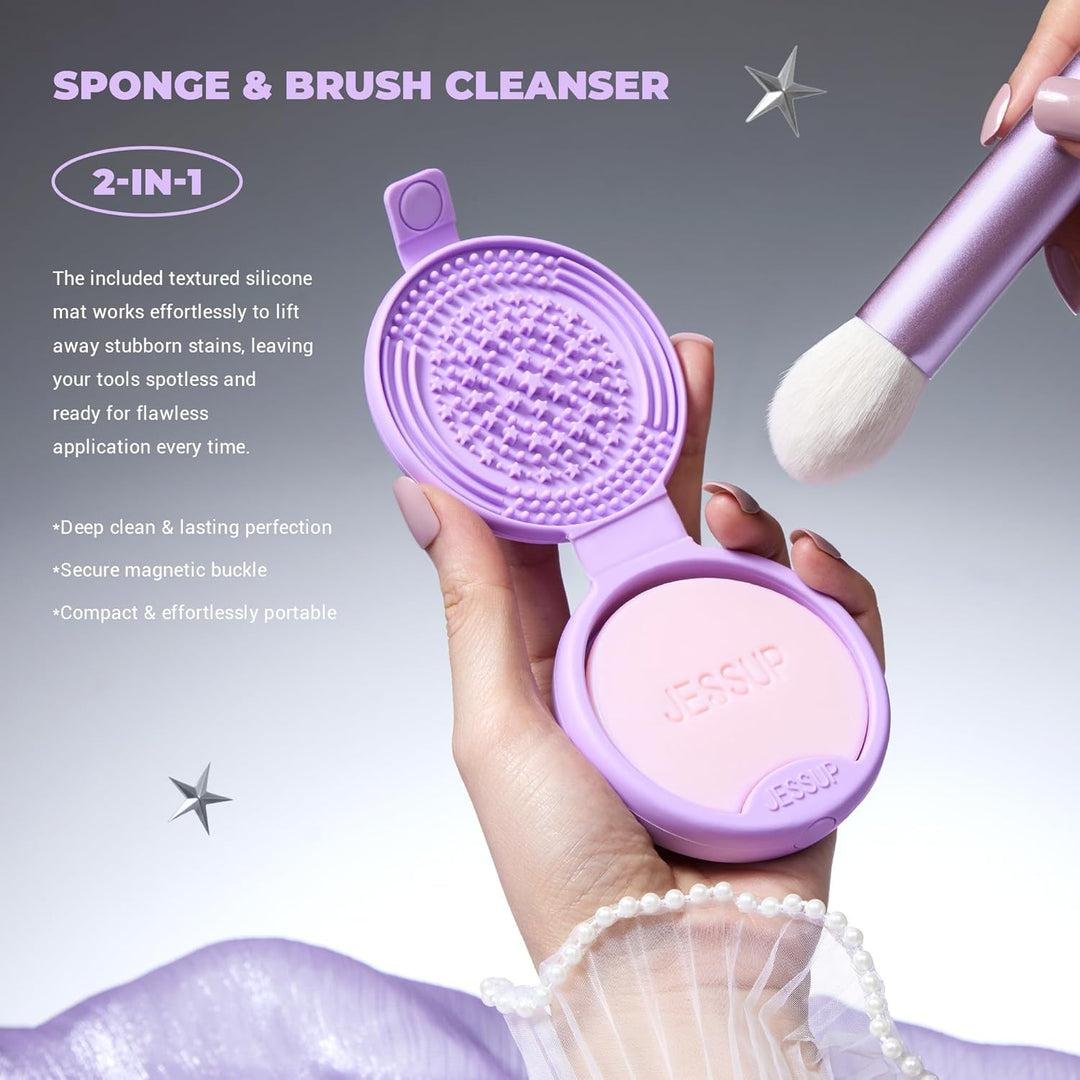 احتفل بجمال كل موسم مع مجموعة هدايا فُرَش المكياج الفاخرة JESSUP 11 في 1 باللون الأرجواني. تجسّد هذه المجموعة الفاخرة والشاملة الجماليات والتصميم العملي، بدءًا من تغليفها الأنيق وصولًا إلى الأدوات نفسها، وجميعها مزينة بمظهر أرجواني أنيق. صُنعت الفُرَش بشعيرات نباتية فائقة النعومة، لتوفر لمسة لطيفة وصديقة للبشرة، مع ضمان ثبات استثنائي للون وقوة دمج ممتازة. توفر الإسفنجات والمنفّاشات (puffs) المرفقة طرق تطبيق متعددة الاستخدامات، وهي مناسبة للاستخدام الجاف والرطب مع جميع أنواع قوام المستحضرات.