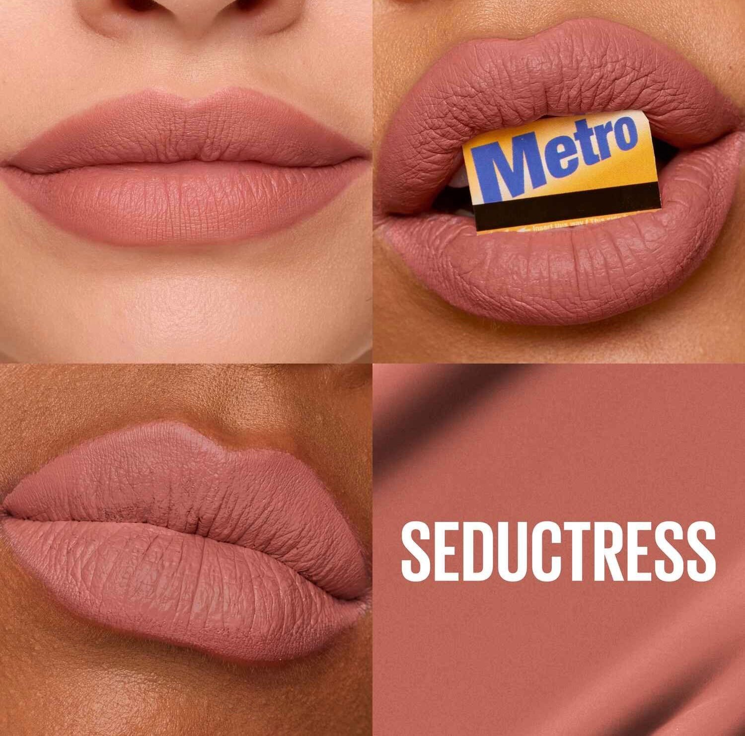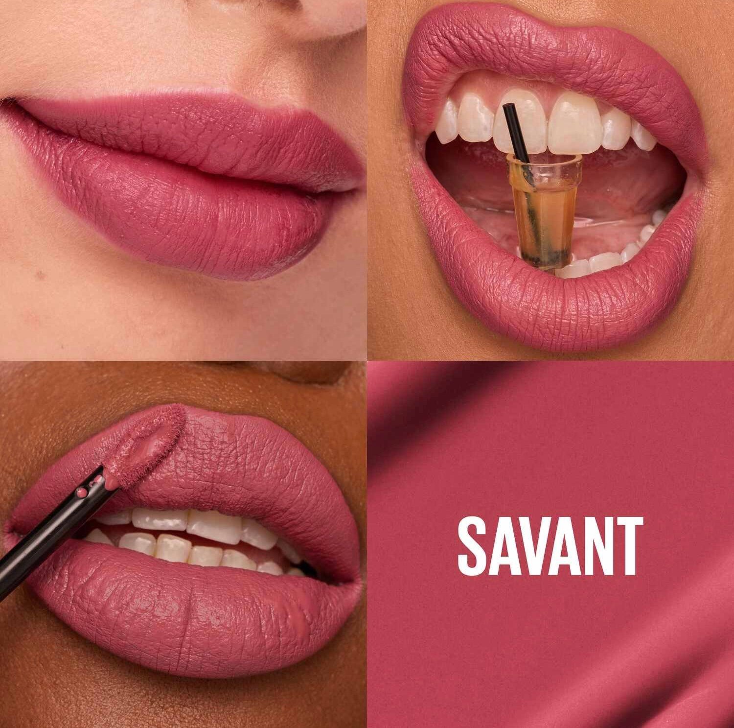 أحمر شفاه يدوم طويلاً: يوفر لكِ هذا الروج السائل ثباتاً فائقاً للون على شفتيكِ لمدة تصل إلى 16 ساعة؛ فهو مقاوم للماء، ولا يتلطخ، ولا يترك أثراً عند الملامسة.