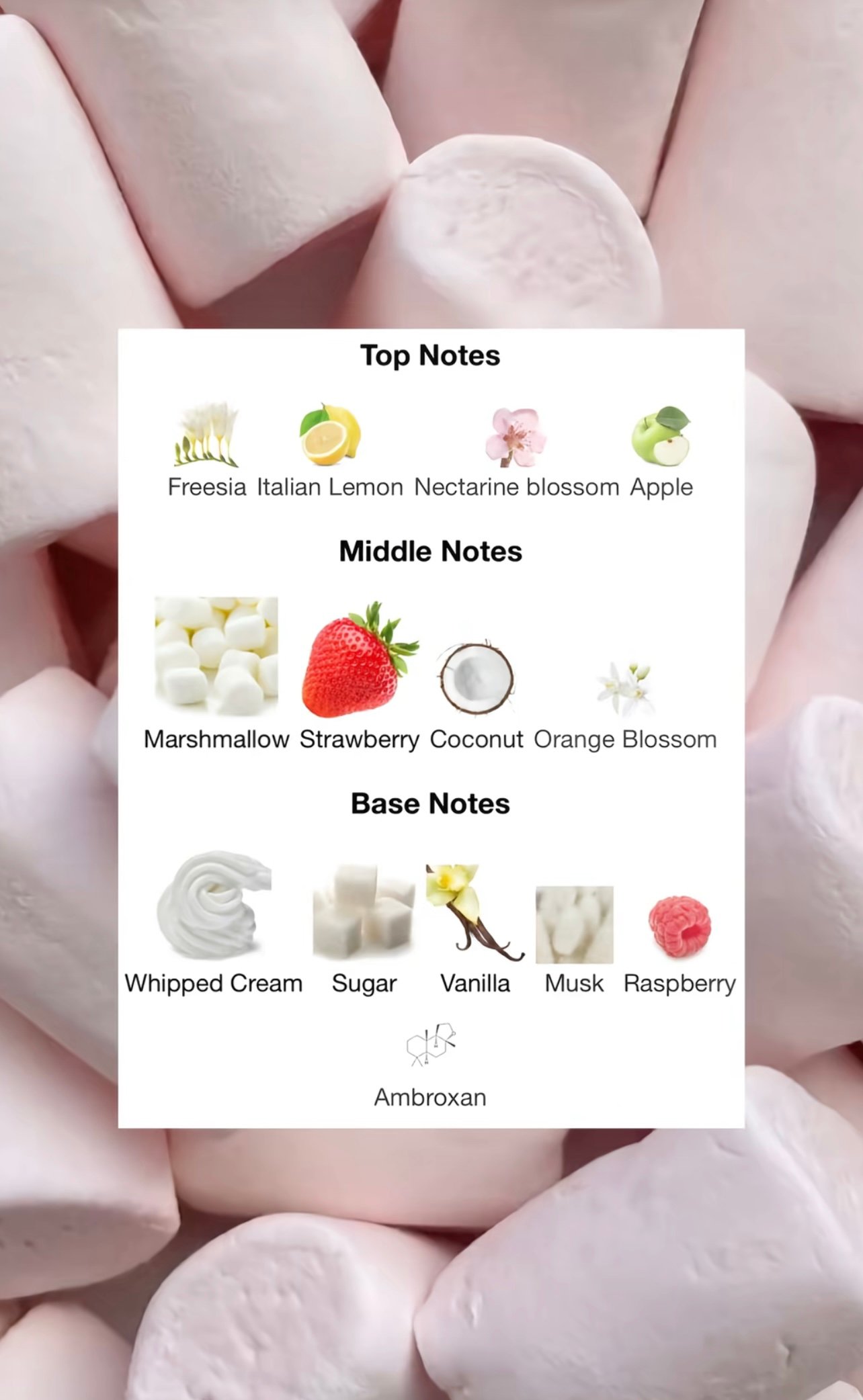يتميز هذا العطر بمزيج ساحر من النغمات التي تذوب لها الحواس، تشمل: